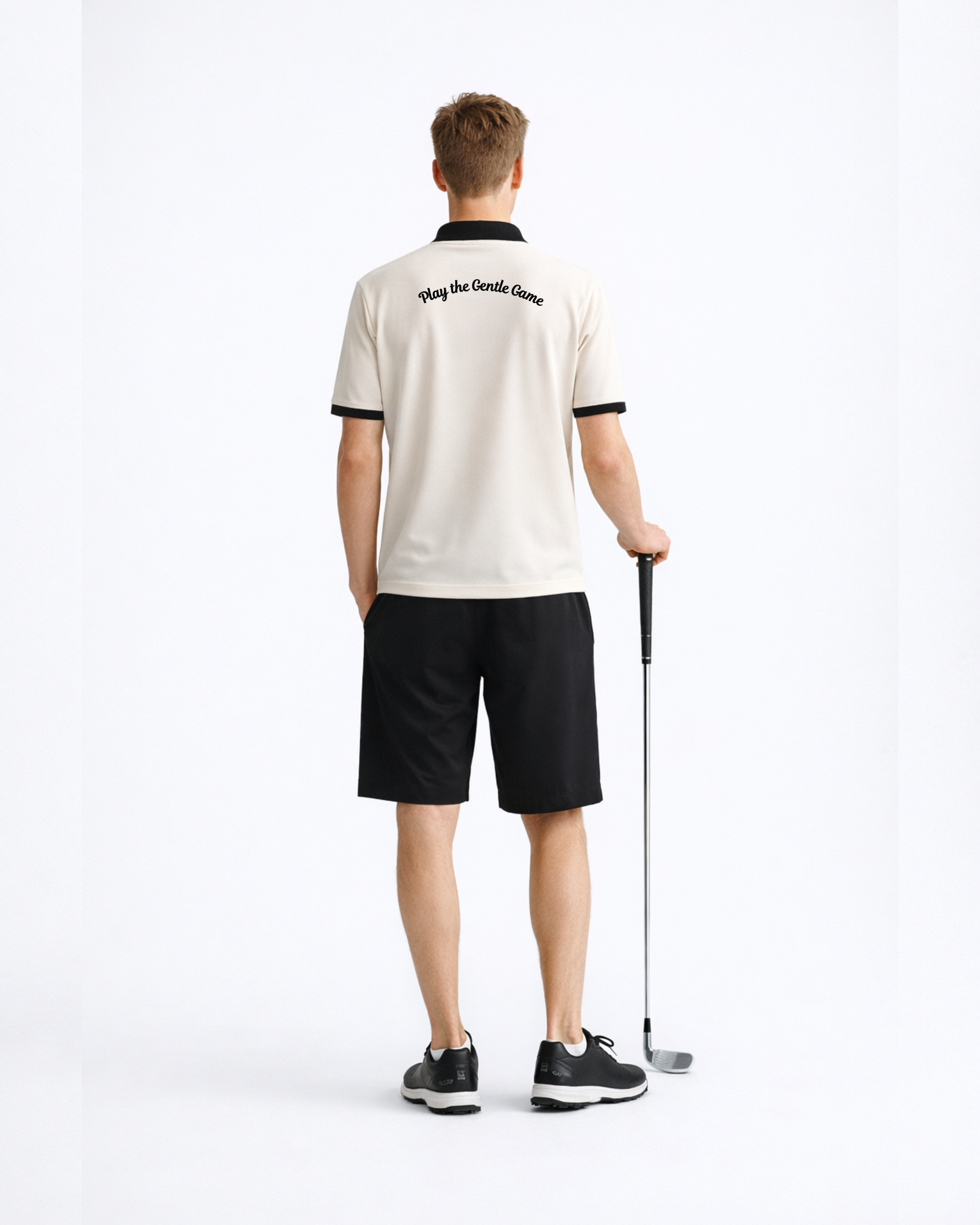 The embroidered golf logo on the front symbolizes composure and control, while the ‘Play the Gentle Game’ tagline stitched below the back collar adds a touch of elegance, a tribute to those who value grace over noise.