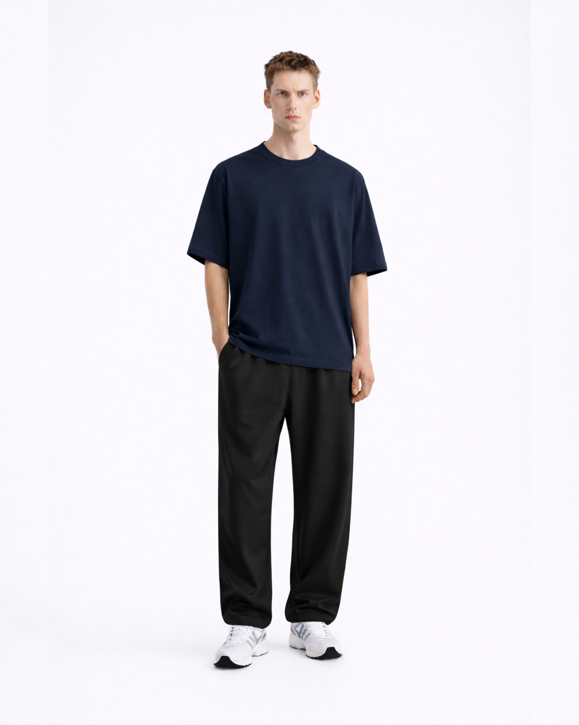 Rich Navy meets thoughtful design in the Midnight Drift Oversized Tee. It’s soft, structured, and slightly weighty, giving it a calm, premium feel. The oversized cut sits right, roomy without losing form, making it perfect for both casual and smart streetwear looks. Every detail, from the ribbed collar to the balanced length, was made to create quiet impact. It’s not about standing out, it’s about standing sure of yourself.